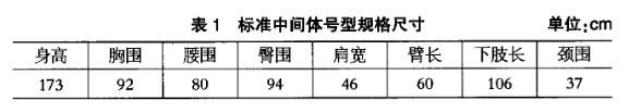 結(jié)合服裝號型標(biāo)準(zhǔn)和GB/13640—1992勞動(dòng)防護(hù)服號型,得到中間體規(guī)格尺寸如表1所示。